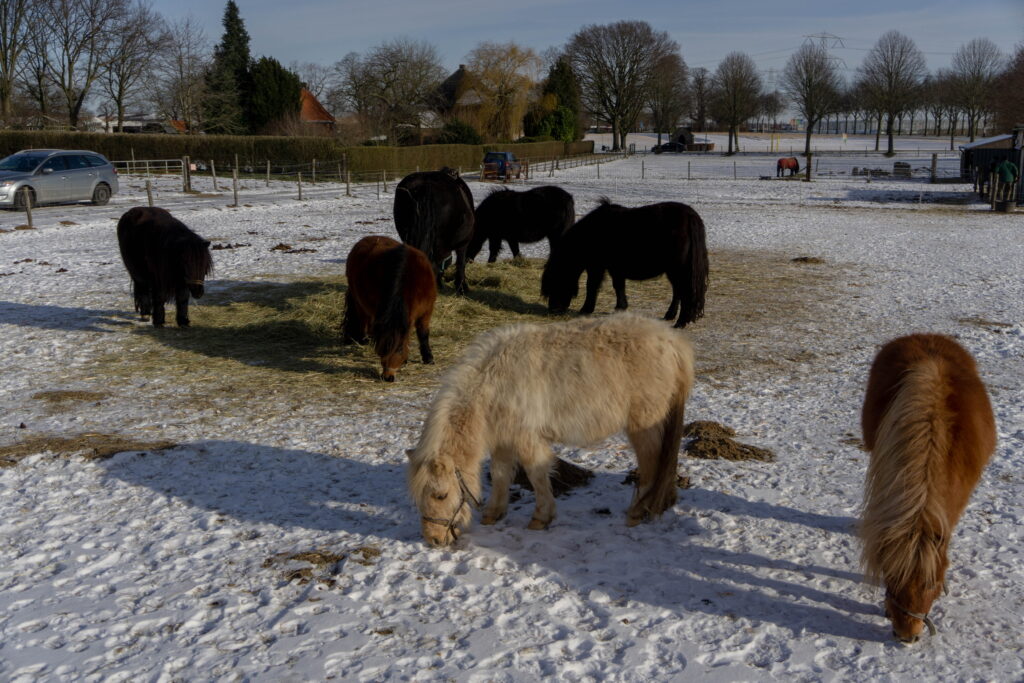 We hebben shetlanders in mini, kleine en grote maat in de kleuren zwart, bruin, vos en palomino bont.